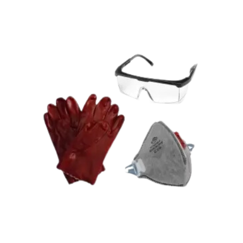 משקפי מגן מקצועיות. כפפות PVC. נשמית עם פילטר. בכל עבודה חובה וחשוב ללבוש ציוד