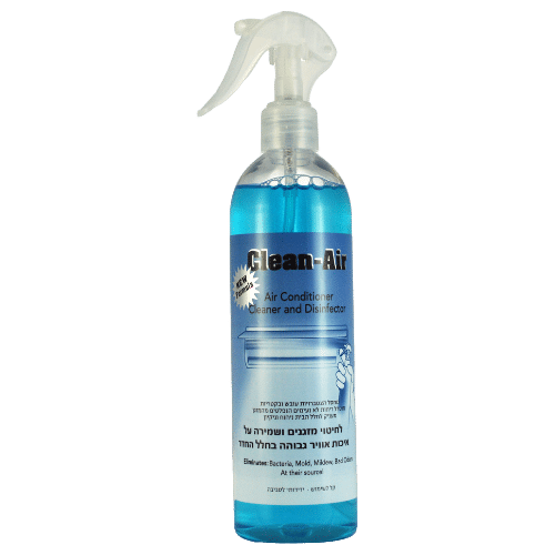ערכת קלין-אייר™-פלוס: תכשיר קלין-אייר™ - בקבוק 400 מ"ל + מתז. טבליית פאן-קלין™ למגשי ניקוז מזגנים.